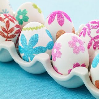 Ecsettel a folyékony ragasztót a főtt tojásra kenni – csillámporban meghempergetni – KÉSZ!