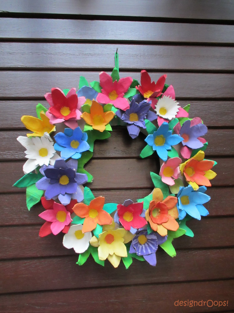 Ez a tojáskarton nagyon jól alakítható és festhető. Sajnos a vízfesték itt nem elég, tempera kell. A száradás és összeillesztés után jöhet a koszorúba rendezés. Azért egy ragasztópisztoly jó ha van a háznál.